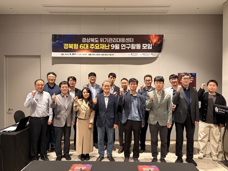 - 전문가 현장 대응 사례 공유, 재난 대응 체계 정밀화 기대 - [세계타임즈=경북 한윤석 기자] 경상북도 위기관리대응센터는 9월 30일 안동 스탠포드호텔에서 ‘경북형 6대 주요 재난 9월 연구 활동 모임’을 개최하고, 경북을 위협하는 재난에 대한 심도 있는 논의를 진행했다.