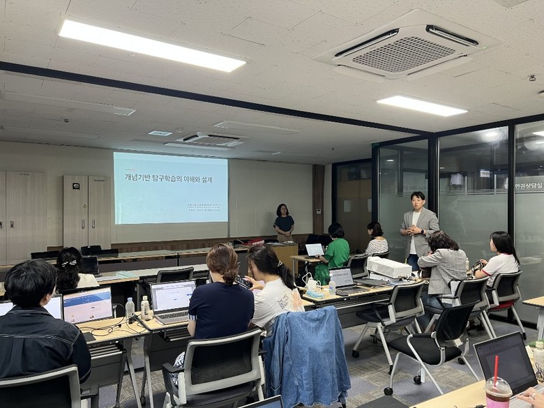 연수는 개정 교육과정에서 강조하는 개념기반 학습의 철학을 이해하고 실천적 수업 설계 역량을 심화하는 데 목적을 두었으며, ▲개념기반 탐구학습 이론 이해 ▲학습 목적 수립 ▲탐구 질문을 활용한 수업 설계 ▲개념의 전이와 성찰 중심의 수업 마무리 구성 등을 중심으로 운영됐다.