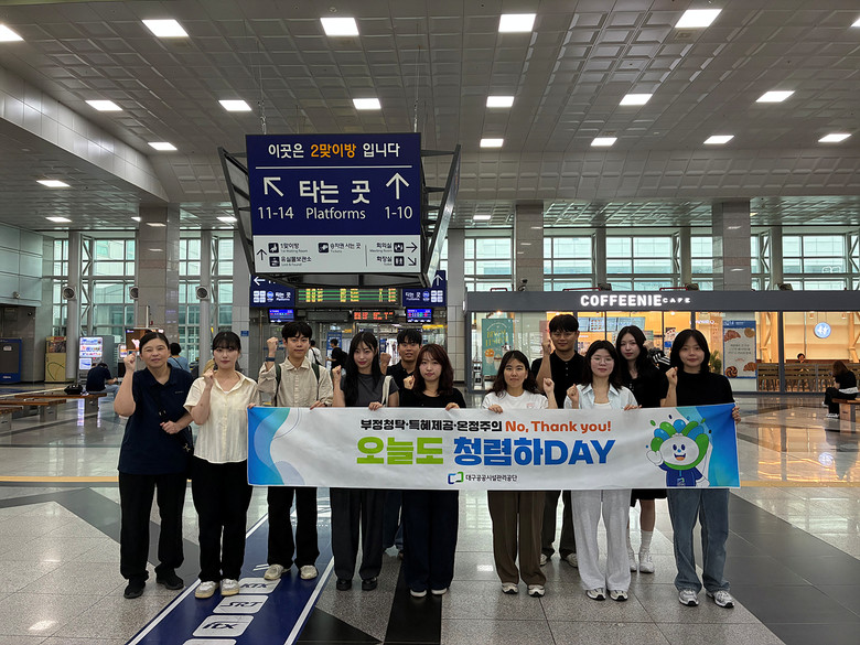 [세계타임즈=대구 한윤석 기자] 대구공공시설관리공단(이사장 문기봉)은 지난 9월 12일(금), 동대구역에서 청년 인턴들과 함께 시민들을 대상으로 청렴 캠페인을 펼쳤다.