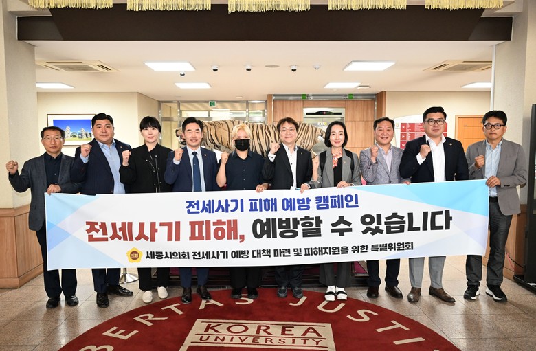 [세종 세계타임즈=이채봉 기자] 세종특별자치시의회(의장 이순열) ‘세종특별자치시의회 전세사기 예방 대책 마련 및 피해지원을 위한 특별위원회’(위원장 김재형, 이하 특위)는 7일 세종청년센터, 고려대학교세종캠퍼스와 홍익대학교세종캠퍼스를 방문하여 전세사기 예방 캠페인을 실시했다.