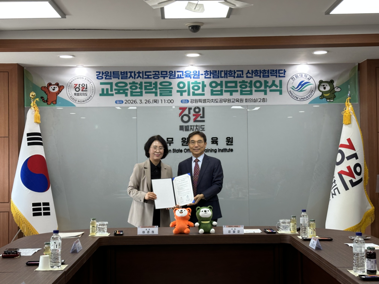 [강원도 세계타임즈=김민석 기자] 강원특별자치도공무원교육원(원장 이경희)은 3월 26일 강원특별자치도공무원교육원에서 한림대학교 산학협력단(단장 강일준)과 업무협약을 체결했다.
