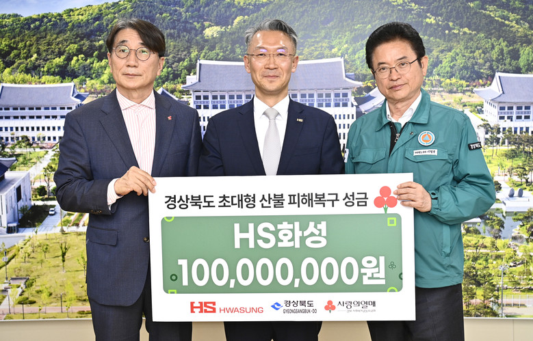 이날 성금은 지난 3월 22일에 발생한 초대형 산불로 큰 피해를 입은 경북 북부지역 의성, 안동, 청송, 영양, 영덕 등 5개 시군의 주민을 지원하기 위해 HS화성 임직원들의 따뜻한 마음을 모아 마련하였으며, 경북사회복지공동모금회를 통하여 재해복구 사업과 이재민 지원에 사용될 예정이다.