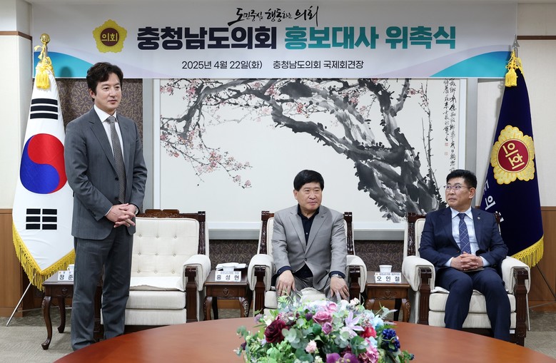 홍성현 의장은 “충남도의회는 불필요한 권위와 관행을 탈피하기 위해 노력해 왔다. 홍보대사께서도 특유의 재치와 진정성으로 이러한 의회의 활동을 널리 알려 주시길 바란다”며 “그동안 방송을 통해 충남에 대한 애정을 전해 주신 것에 감사드리며 앞으로도 활약을 기대한다”고 말했다.