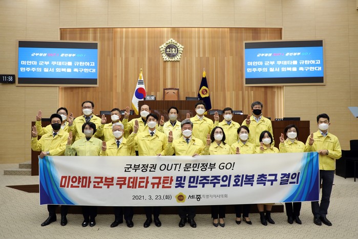 특히 세종시의회 전 의원은 본회의 종료 직후 국회법 개정과 미얀마 민주주의의 회복을 촉구하는 퍼포먼스를 펼쳤다.