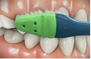 | ▲ 칫솔질을 옆으로 하면 약해진 치경부의 치아 조직이 파일 수 있고 얇은 잇몸이 손상될 수 있다. |