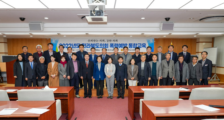 [전북세계타임즈 = 전영숙 기자] 전라북도의회(의장 국주영은)는 12일 의원 총회의실에서 도의원과 사무처 간부 공무원 50여 명을 대상으로‘4대 폭력* 예방 교육’을 실시했다.