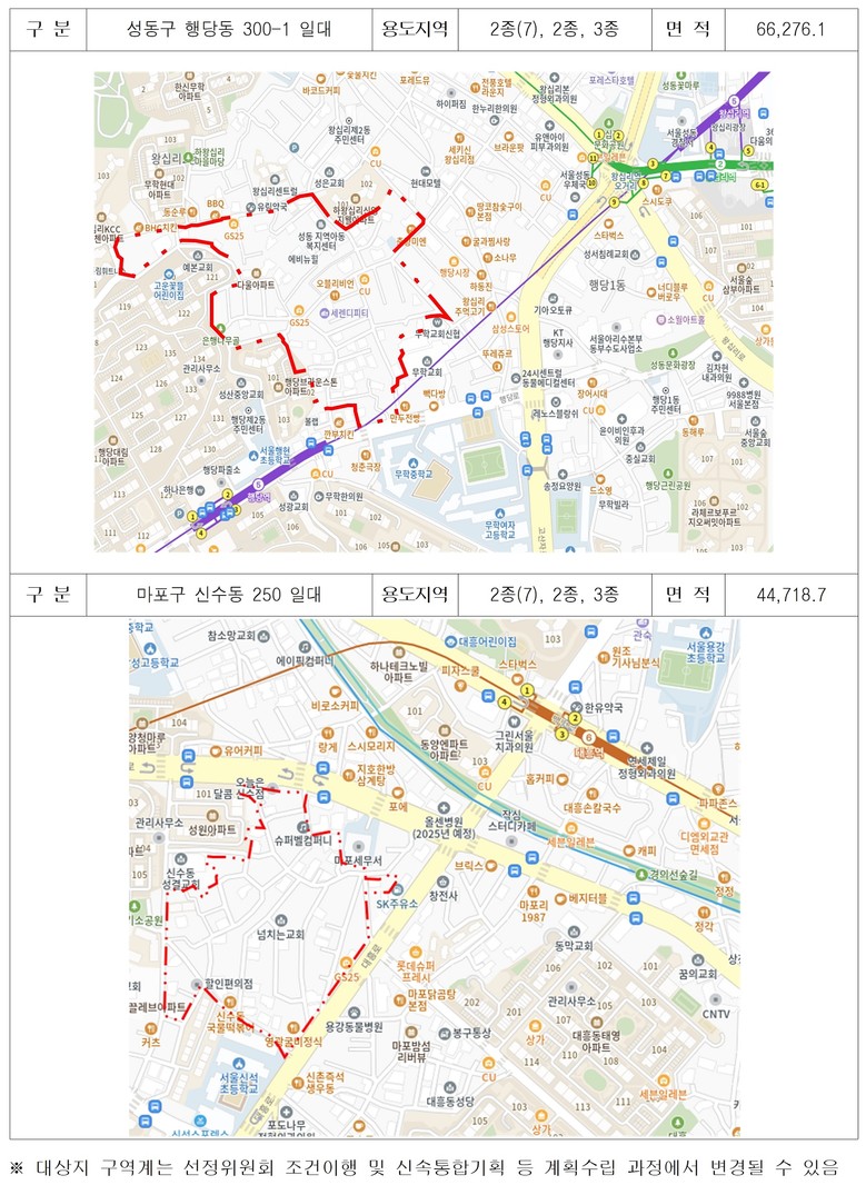 신사동 300번지 일대는 노후도 83%, 반지하주택 비율이 73%에 달하는 노후 저층주거지로 주거환경의 개선이 필요한 지역이며. 독산동 1022번지 일대는 기존에 선정된 재개발사업과 연접한 지역으로 도로 등 기반시설 연계를 통해 주거환경 개선 효과가 클 것으로 기대되며, 신수동 250번지 일대는 70% 이상의 주민이 사업추진에 동의하는 등 주민참여 의지가 높은 지역이다.