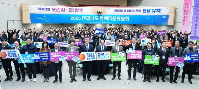 김영록 지사는 “지난해 불법 비상계엄 이후, 케이(K)-민주주의를 회복하고 전남이 굵직한 성과를 거둔 것은 모두 정책자문위원 덕분”이라며 “최근 전남은 AI 데이터센터, 컴퓨팅센터, 인공태양 연구시설 유치, 누리호 발사와 국산화 등 첨단 산업도시로 우뚝 서 천지개벽을 이뤄냈다”고 강조했다.