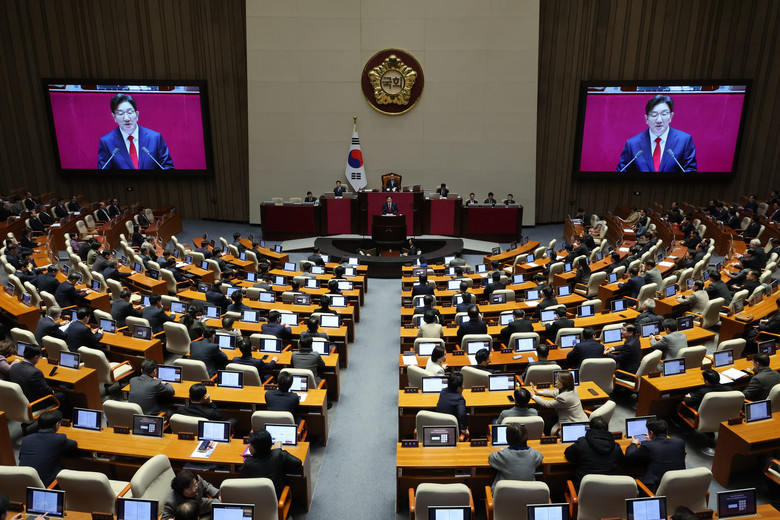 [세계타임즈 = 이채봉 기자] 국민의힘 권성동 원내대표는 11일 내수 회복 등을 위한 추가경정예산안(추경) 편성과 대통령 및 국회 권한 분산을 골자로 하는 개헌을 주장했다.권 원내대표는 이날 국회 교섭단체대표 연설에서 "우리가 겪고 있는 정치 위기의 근본적인 해결책은 개헌"이라며 "이제는 제왕적 대통령의 권력을 분산하고, 제왕적 의회의 권력 남용도 제한할 수 있는 구조를 고민해야 한다"고 말했다.