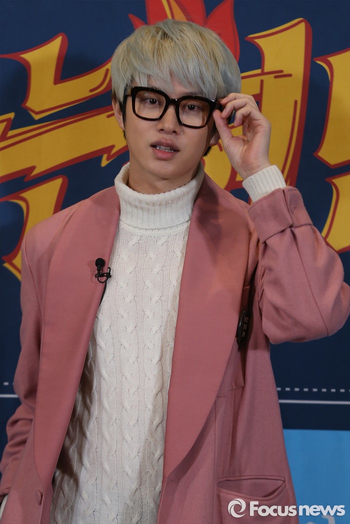 (서울=포커스뉴스) 4일 오후 서울 중구 탐앤탐스 청계광장점에서 열린 JTBC 예능프로그램 '아는형님' 제작발표회에 참석한 가수 김희철이 포토타임을 갖고 있다.