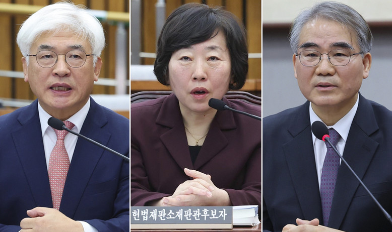 [세계타임즈 = 심귀영 기자] 마은혁(61·사법연수원 29기)·정계선(55·27기)·조한창(59·18기) 등 국회 추천 몫 헌법재판관 후보자 3명의 임명동의안이 26일 국회 본회의를 통과했다.