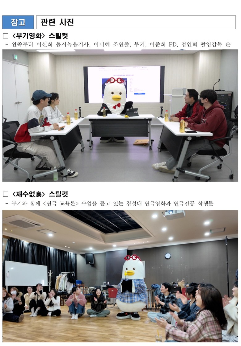 한편, 올해 <부기튜브>에서는 부기의 대학 생활을 담은 <재수없조(鳥)>, 부산 시민과 함께하는 길거리 공연(버스킹) 콘텐츠 <비-스테이지(B-Stage)>를 선보일 예정이다.