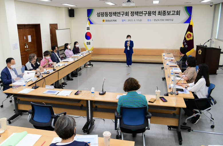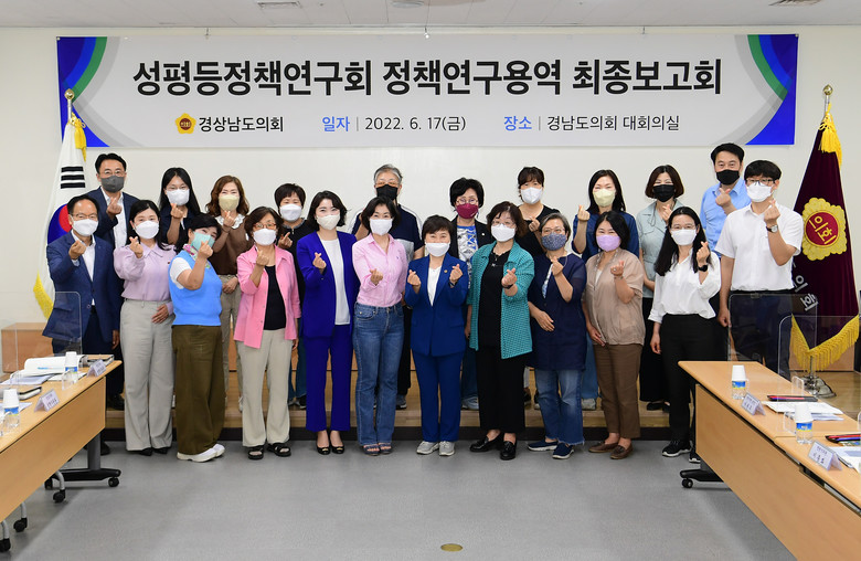 한편 경상남도의회 성평등정책연구회는 2018년 7월에 결성된 이후, 경남도민의 행복과 삶의 질 향상을 위해 다양한 분야의 성평등 정책연구 및 실천방안을 찾고자 토론회, 현지활동 등 다양한 연구활동을 펼치고 있다.