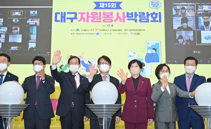 대구시가 주최하고 대구시, 구·군자원봉사센터, 대구기업자원봉사협의체가 주관하는 ‘제15회 대구자원봉사박람회’는 ‘행복 대구! 자원봉사의 힘으로!’ 라는 슬로건으로 위드코로나 가운데 일상회복 중인 시민들을 위해 자원봉사의 감동을 온택트로 즐길 수 있도록 축제의 장으로 마련됐다.