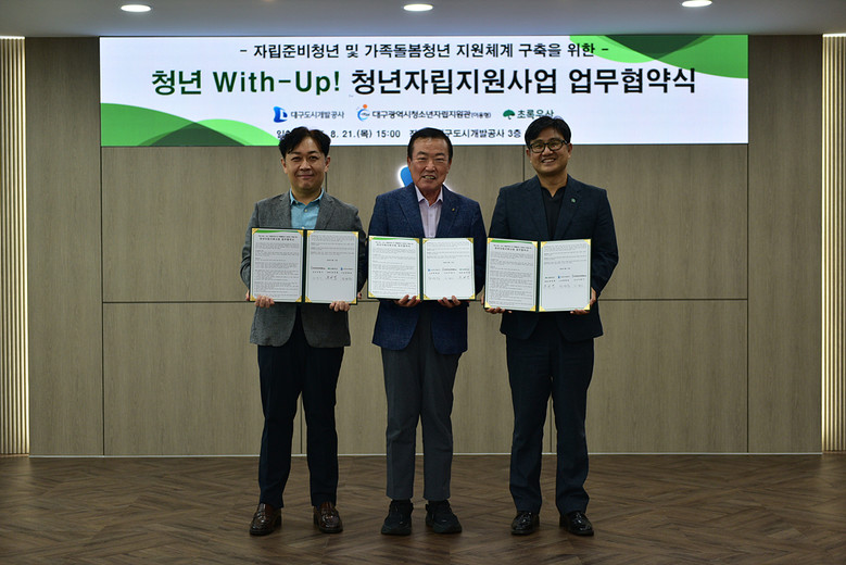 정명섭 대구도시개발공사 사장은 “이번 협약을 통해 복지 사각지대 청년들이 성공적으로 자립해 지역사회 일원으로 성장할 수 있도록 최선을 다하겠다”며, “청년들이 희망을 품고 자립할 수 있도록 든든한 동반자가 되겠다”고 말했다.