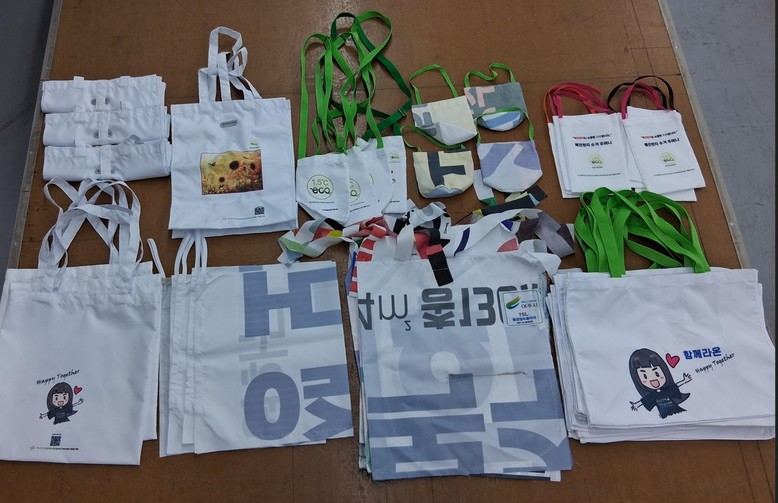 “폐현수막 재활용 사업” 추진으로는 지역 내 폐현수막을 수거하고 이를 원료로 가공해 에코백, 마대자루 15,000장을 제작하고 관내 읍·면·동행정복지센터 등 필요한 곳에 우선 보급하였다.