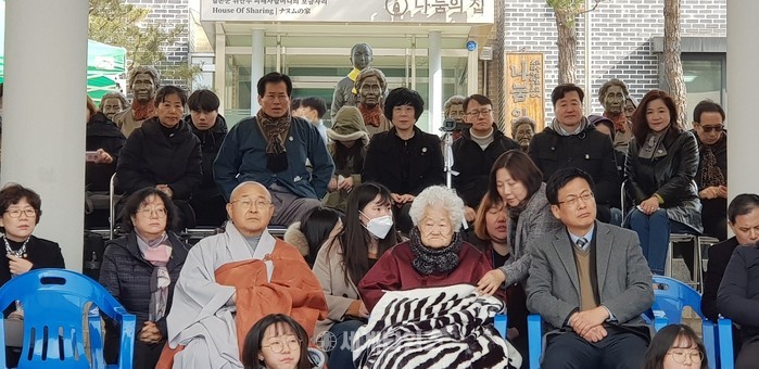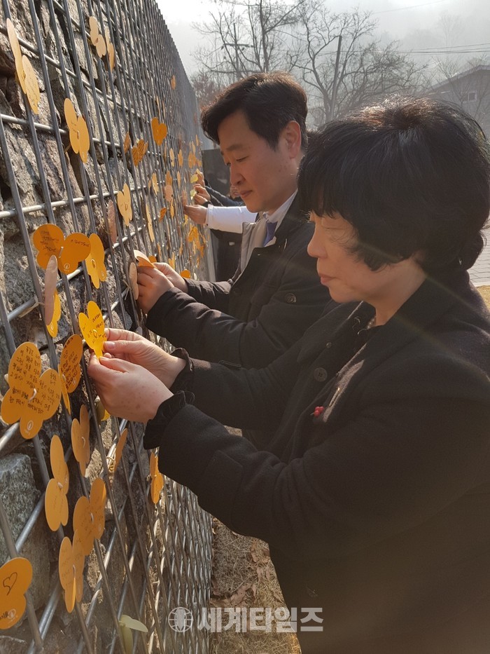 [세계타임즈 심귀영 기자]나누고 베풀고 봉사하는 그룹 한옥순 회장은 제100주년 3ㆍ1절을 맞아 경기도 광주의 일본군 ‘성노예’ 피해 할머니들의 쉼터 나눔의 집(원장 원행) 집을 방문해3·1 운동 100주년 기념식과 함께 일본군 ‘성노예’ 피해자 추모제 일본군 ‘성노예’ 문제를 해결하기 위해 노력하고 있는 각 관계부처, 유가족, 후원자, 자원봉사자 등과 행사 참석과 함께 해가 지날수록 건강이 악화되고, 기력이 떨어져 가는 성노예 피해자 할머니들의 필요 물품"안심 깔개 매트, 물티슈, 의상"등을 김무연 Gs안과 대표원장 성정민 (주) 벨라랩 대표 후원으로사랑과 정성으로 준비해 전달하고 일본군 위안부 역사관 전시장을 둘러보고나눔의 집 추모공원에서 참배, 추모 나비 달기 등 행사를 가졌다.