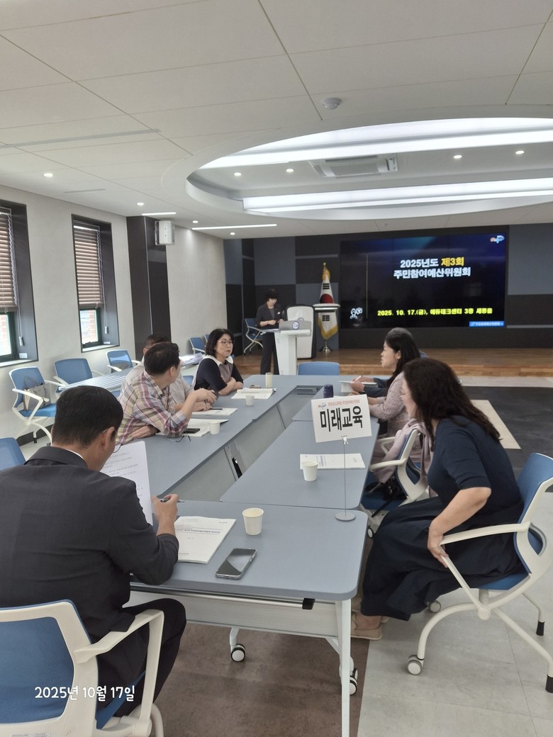 이번 회의에서는 ▲2025년도 주민참여예산 제안 공모사업 심의 ▲2026년도 경상남도교육비특별회계 주민참여예산 의견서(안) 심의 ▲기타 협의 및 소통 등을 주요안건으로 진행하였다.