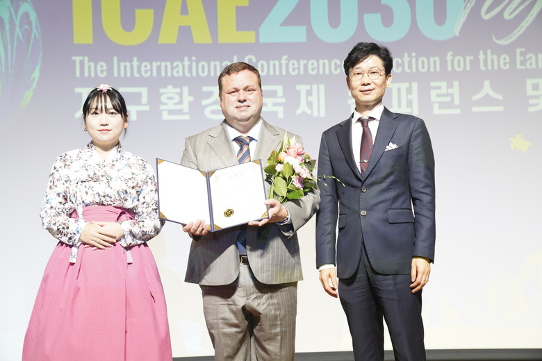 10월 31일 ㈔SNS기자연합회(회장 김용두)가 주최한 '지구환경 국제 컨퍼런스 및 인터내셔널리더어워드 시상식'이 국회의사당 국회의원회관 대회의실에서 열린 가운데 가수이자 성악가인 폴포츠(Paul Potts)가 '음악 부문 공로상'을 수상하고 있다.