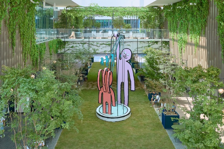 가장 이색적인 공간은 1층 잔디 중앙광장이다. ‘어반테라스’라는 새로운 명칭으로 바뀌는 중앙광장은 밝고 선명한 색감, 재치있고 유쾌한 표현력으로 유명한 세계적 그래픽 아티스트 장 줄리앙 작가의 작품으로 꾸며 눈길을 끈다. 개방된 잔디 중앙광장에서 다양한 사람들이 친근하게 어우러지는 모습을 흥미롭게 표현한 작품이 배치돼 현대프리미엄아울렛 송도점의 새로운 상징적 공간이 될 것으로 기대된다.