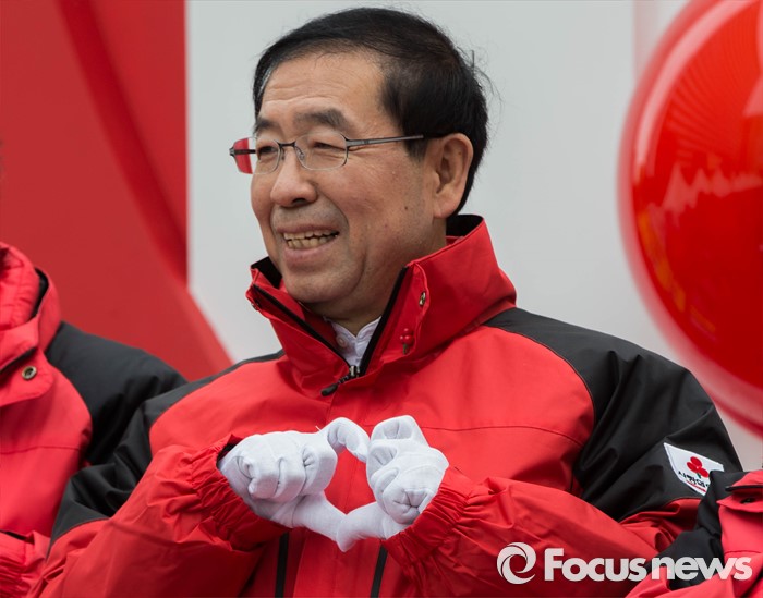 | △ 사랑의 하트모양 만든 박원순 서울시장 |