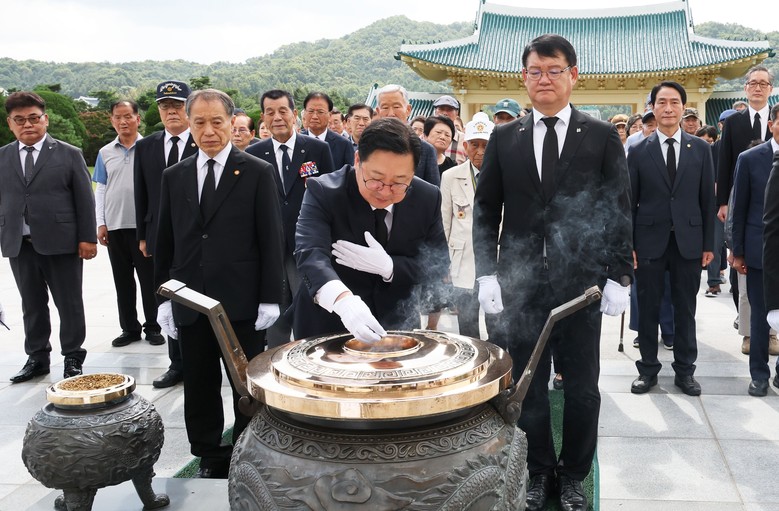 이 시장은 현충탑 앞에서 헌화와 분향을 하며 나라를 위해 헌신한 애국선열들의 숭고한 뜻을 기리고, 방명록에 “선열들의 희생과 정신을 잊지 않고 대전의 미래를 힘차게 열어가겠습니다”라는 뜻을 남겼다.