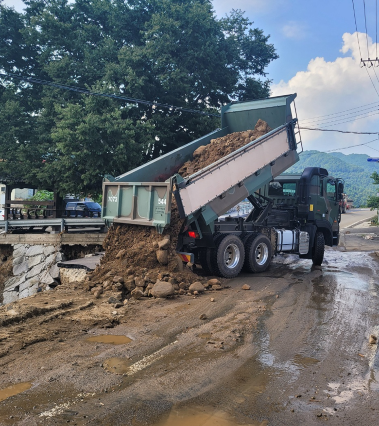 * 경남도 장비 6대(백호 2대, 덤프트럭 4대), 군 장비 7대(백호 3대, 덤프 4대)