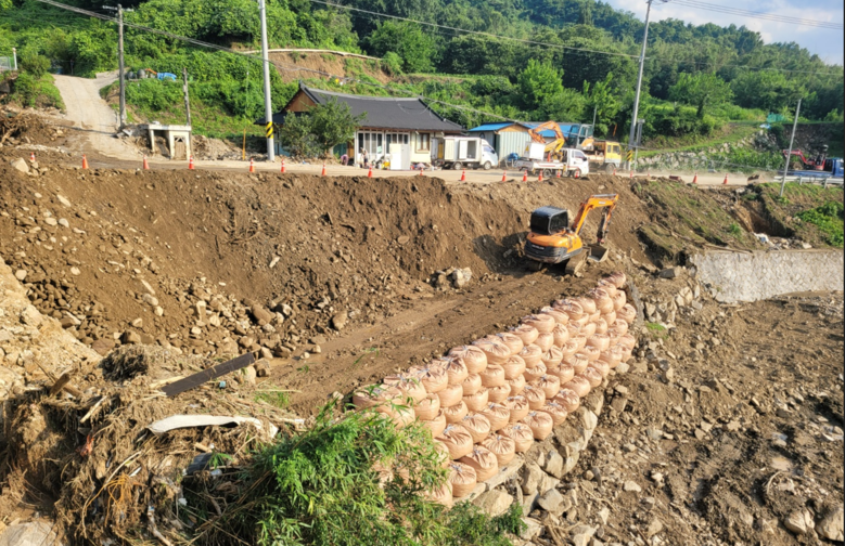 국도59호선의 도로통제 구간은 비탈면 붕괴와 지반침하로 토사가 유실돼 신속한 복구에 난항을 겪고 있었지만, 도는 하천과 산사태 피해지역의 퇴적 토사를 활용하는 방안을 마련했다.