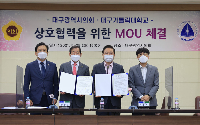 이번 MOU는 지방자치 30년을 갈무리하고 새로운 30년을 준비하기 위한 발전적 고민에서 시작되어 지역 학문의 중심인 대구가톨릭대학과 대구시의회가 지역과 시민을 위한 ‘교육 및 연구역량 증진’에 상호 협력한다는 취지에서 이루어 졌다.