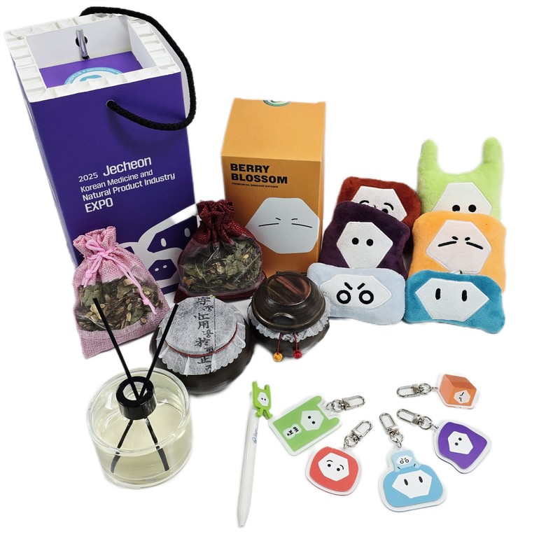 이 밖에도 ▲공식 캐릭터인형 ▲키링 ▲친환경 텀블러 ▲에코백 ▲펜‧스티커‧엽서를 포함한 문구세트 ▲약초 향기주머니 ▲찻잔세트 등 다채로운 상품이 마련됐다.