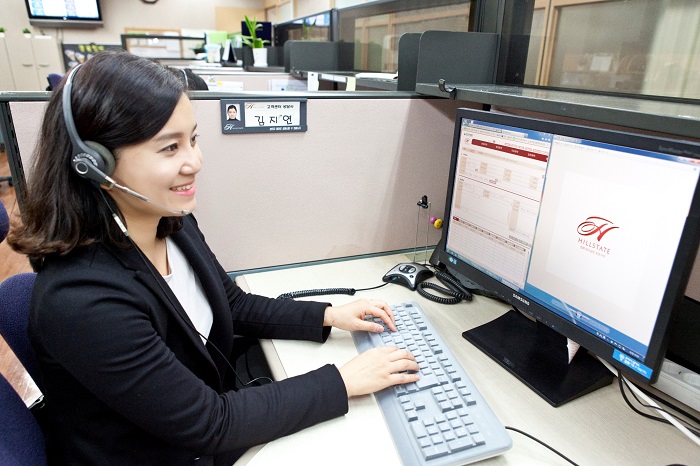 | △ 현대건설 콜센터 직원이 일하는 모습. <사진제공=현대건설> |
