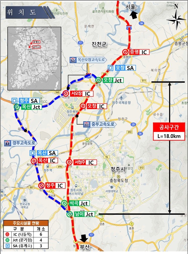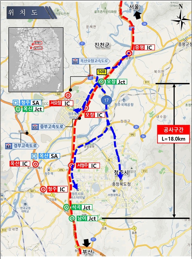 ‣ 옥산오창고속도로 옥산JCT, 경부고속도로 등으로 우회 가능