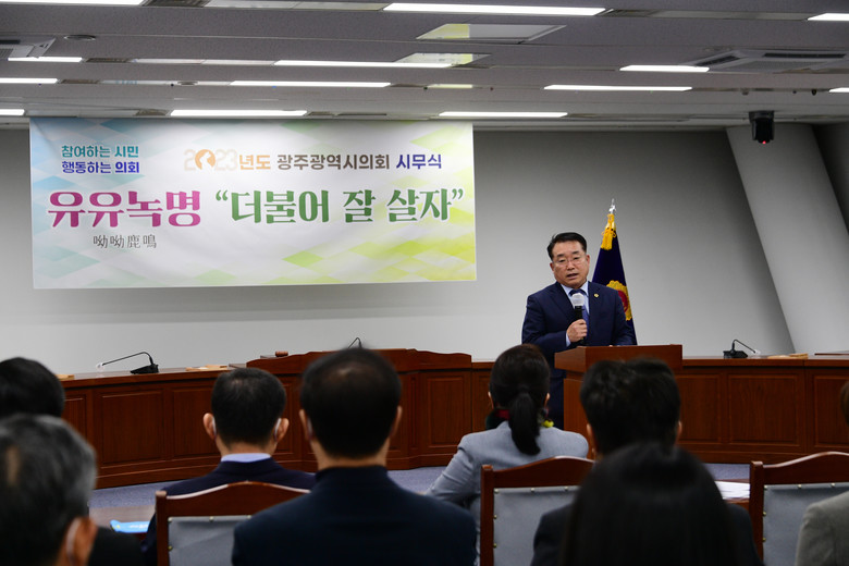 정무창 의장은 신년사에서 “함께 더불어 잘 살자”는 의미로 올해 시의회의 다짐을 시경(詩經) 소아 편에 나오는 “유유녹명”으로 잡았다.