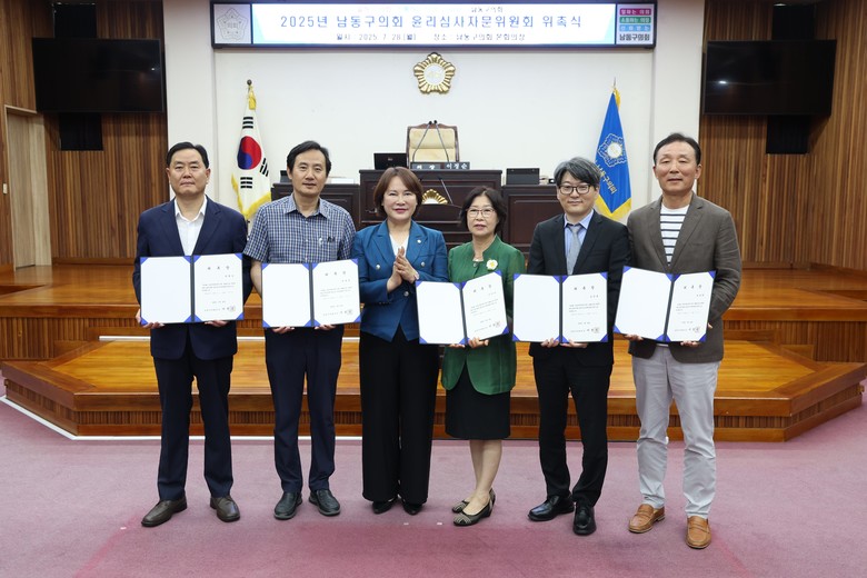[남동구 세계타임즈=심하린 기자] 남동구의회(의장 이정순)가 28일 남동구의회 본회의실에서 윤리심사자문위원회 위촉식을 갖고 5명의 위원을 위촉했다.