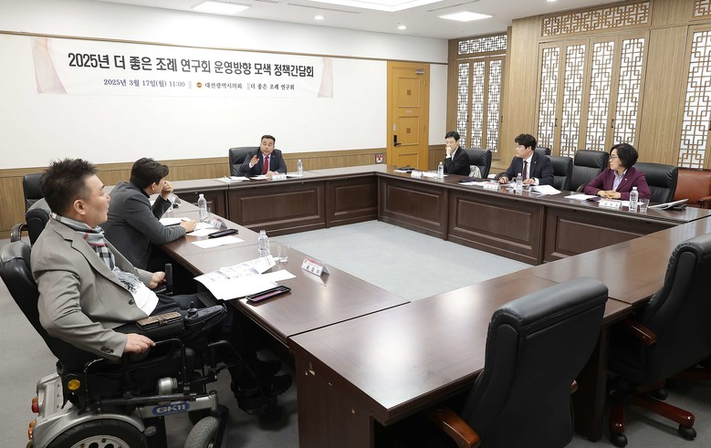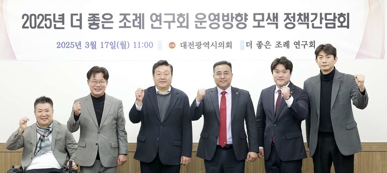 [대전 세계타임즈=이채봉 기자] 대전시의회 김영삼 의원(서구2, 국민의힘)이 회장을 맡은 ‘더좋은 조례 연구회’가 17일 시의회 공감실에서 간담회를 개최했다. 본 연구회는 대전시 조례의 품질 제고를 통해 제도와 행정의 정합성을 확보하고 시민의 삶의 질을 강화하고자 조직됐다.