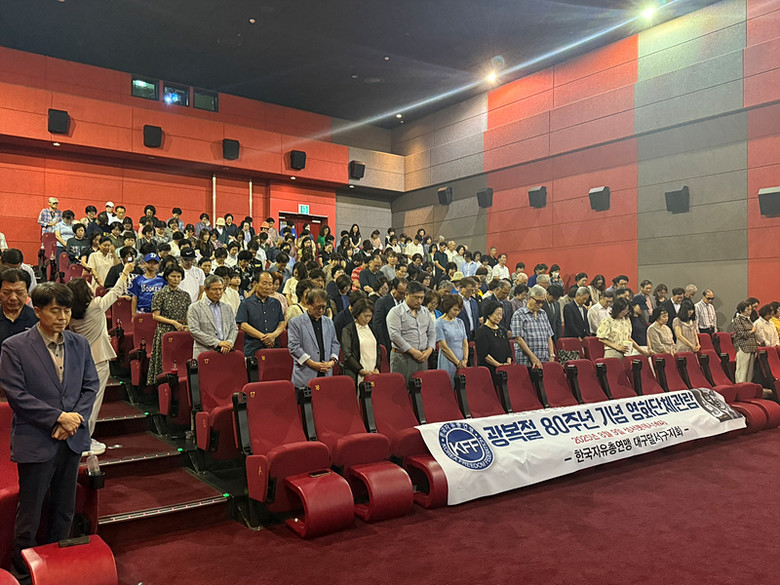 [세계타임즈=대구 한윤석 기자] 한국자유총연맹 대구광역시지부가 지난 8월 9일 오후 2시 30분, 대구 성서 롯데시네마에서 광복 80주년을 기념하는 특별영화 상영회를 개최했다.