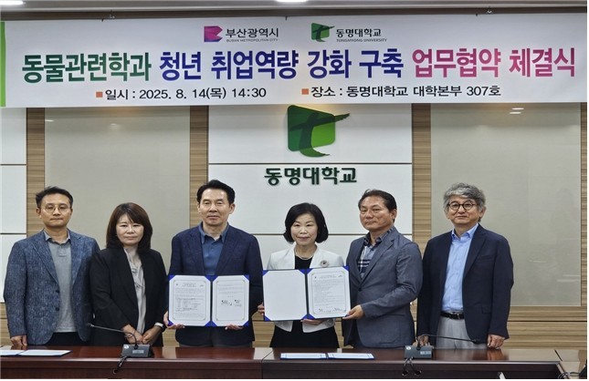 ◈ ▲[낙동강관리본부] 동물병원급 의료 장비를 활용한 실습 기회 제공 ▲[동명대] 학점제 관리 및 교육과정 연계 등 협력 예정… 지역 청년 취업 경쟁력 및 시 환경정책 품질 향상 기대 [세계타임즈=부산 이용우 기자] 부산시 낙동강관리본부(이하 본부)는 어제(14일) 오후 동명대학교(총장 이상천)와 「동물관련학과 청년취업 역량 강화 구축을 위한 업무협약」을 체결했다고 밝혔다.