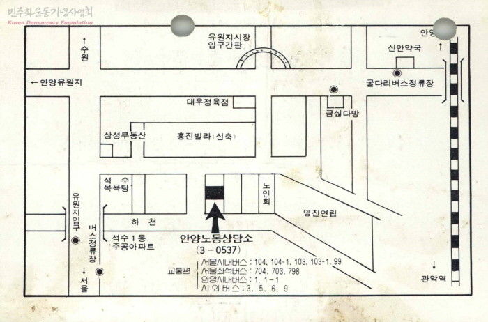 제가 정중하게 거절했더니 그러면, 아무런 간섭도 하지 않을 테니 전태일 기념사업회 부설 안양노동상담소라는 이름을 사용해 달라고 간곡하게 부탁했어요. 그 때 단호하게 거절하지 못하고 생각할 시간을 달라고 말하고 헤어졌어요. 김문수 선배가 집요할 정도로 여러 차례 요청했어요. 그래서 결국 그 이름을 사용하게 되었어요.