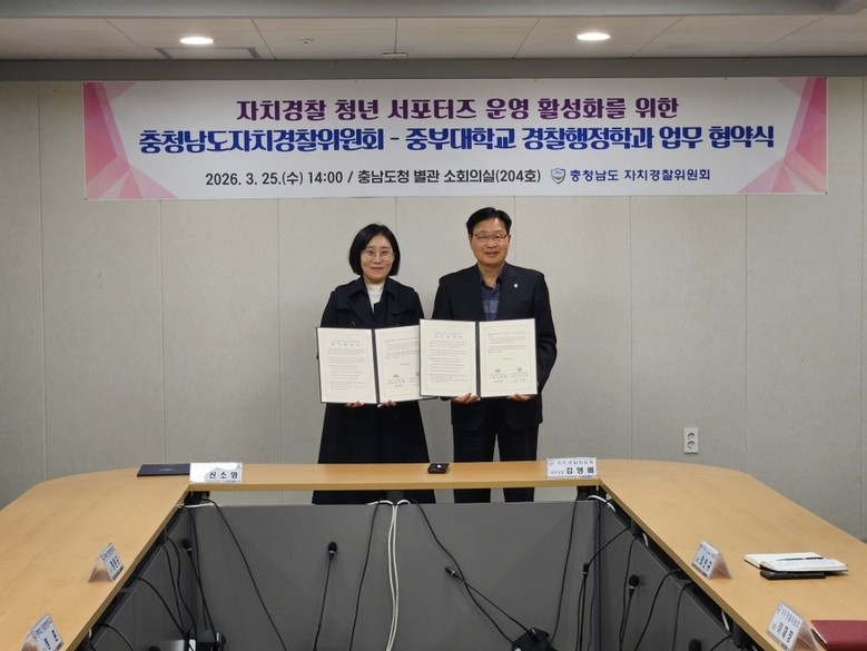 이번 협약식에는 김영배 도 자치경찰위원회 사무국장과 관계 공무원, 신소영 중부대 경찰행정학과장 및 교수진이 참석했다.