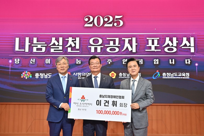 단체 부문은 △NH농협은행 공주시지부 △당진시 복지재단 등 8개 기관·단체, 개인 부문은 △부영산업(주) 고영진 대표이사 △종로약국 김기효 약사 등 12명에게 도지사 표창을 전달했다.
