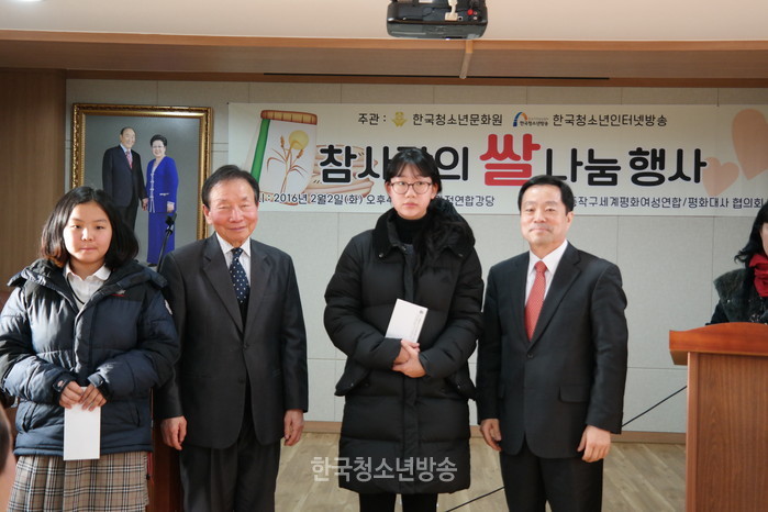 한국 청소년 행동과학 문화원 주체로 20여개 초.중.고. 학교장의 추천을 받아서 참사랑 희망쌀 나눔 행사를 했다