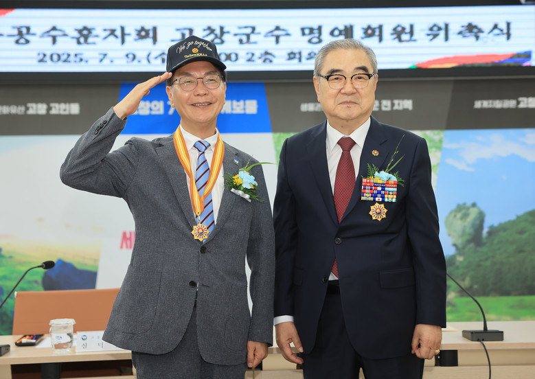 심덕섭 고창군수는 “무공수훈자회의 명예회원으로 함께하게 되어 큰 영광”이라며 “앞으로도 국가유공자에 대한 예우와 지원을 더욱 내실 있게 추진하고 호국보훈의 정신을 이어나가겠다”고 강조했다.