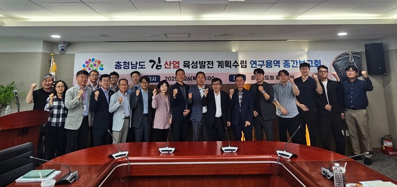 도는 26일 도청 중회의실에서 전형식 정무부지사를 비롯해 시군, 김산업 전문가, 부경대·한국해양수산개발원(KMI) 연구진 등 30여 명이 참석한 가운데, ‘충남 김산업 육성발전 계획수립 연구용역 중간보고회’를 개최했다고 밝혔다.