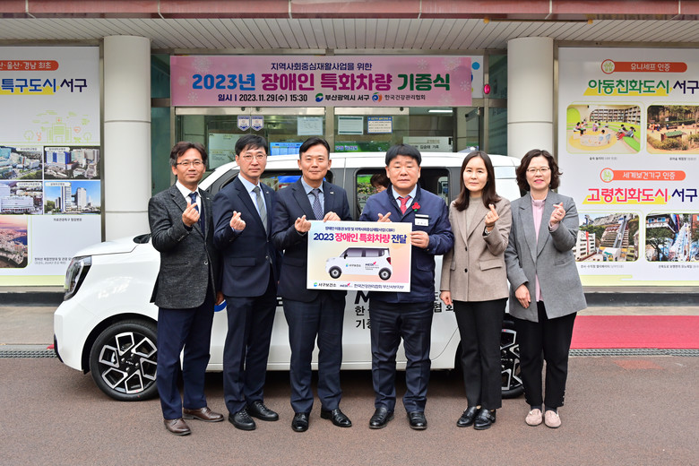 기증식에는 공한수 서구청장과 박창우 한국건강관리협회 부산서부지부 본부장 등이 참석하였으며 구는 이번에 기증 받은 장애인 특화차량을 활용해 장애인 가정으로 찾아가는 방문 재활 및 장애인 재활운동 프로그램 등 재활사업을 활성화 할 계획이다.