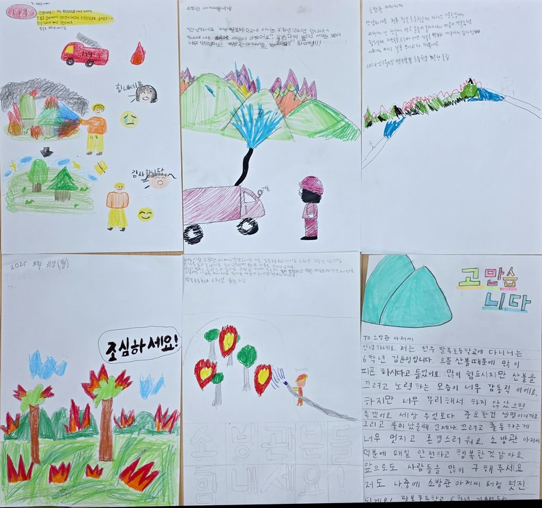 편지를 보낸 학생들은 전교생 56명 규모의 작은 학교인 팔복초등학교의 6학년 학생 6명으로, 최근 잇따른 산불 진화 활동에 힘쓰고 있는 소방대원들에게 진심 어린 응원과 감사의 마음을 전했다.