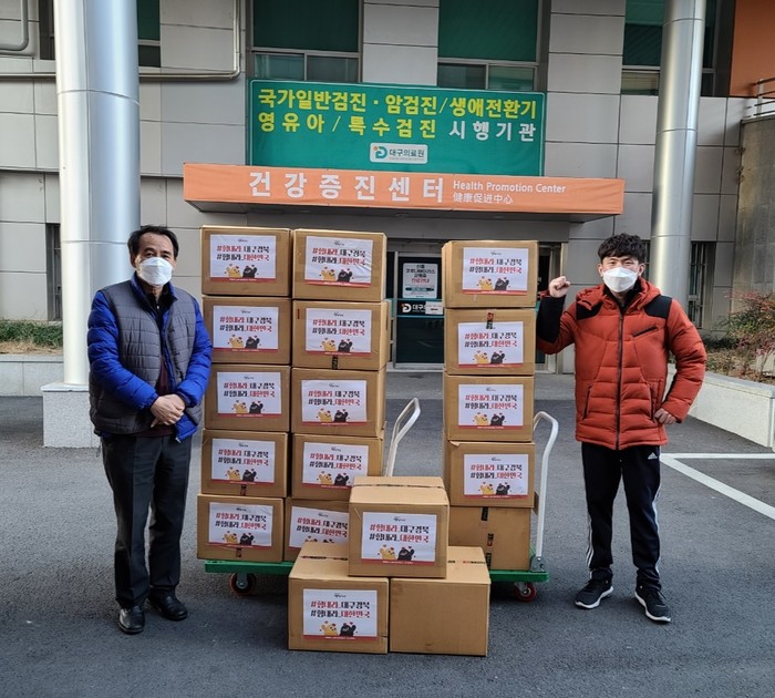 | ▲ 대구의료원(3.15) : 대구의료원 관계자(좌), 땅땅치킨 직원(우) |