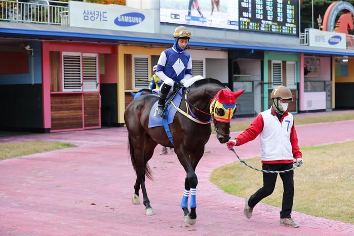 [세계타임즈 심하린 기자]지난 10월 31일(일) 한국마사회 서울 경마공원에서 열린 ‘농협중앙회장배(L, 제8경주, 1200m, 2세, 국OPEN)에서 ‘아스펜태양(2세, 수, 한국, R41)’이 승리하며 생애 첫 대상경주 트로피를 안았다. 이번 우승으로 올해 10월 데뷔한 후 3전 3승을 달성했다. 경주기록은 1분 13초.