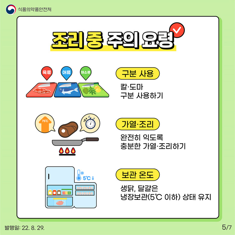특히, 기온이 높은 여름철에 주로 증가하는 살모넬라 식중독 예방을 위해 달걀 등 식재료 취급·보관 관리 등 식중독 예방 수칙에 대한 현장 안내도 함께 진행한다.