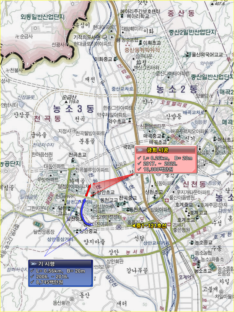 달천현대I'park∼천곡천 간(중1-121) 도로개설 관련 논의