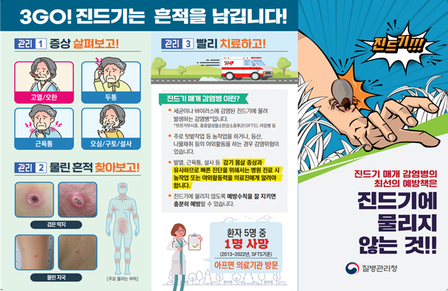 ‘중증열성혈소판감소증후군(SFTS)’는 작은소피참진드기에 물려 발생하는 바이러스성 질환으로 고열과 함께 구토, 설사, 복통, 전신 통증을 동반하며 심한 경우 의식 저하까지 나타날 수 있다. 특히 치명률이 약 18%에 달하는 것으로 알려져 있어 주의가 요구된다.